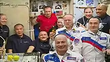 On May 14, 2021, the Interagency Committee approved the composition of the ISS main and alternate crews for the period 2021-2023.[26] Cosmonaut Anton Shkaplerov (commander) and the crew of the film The Challenge: actress Yulia Peresild and director Klim Shipenko, went to the ISS onboard Soyuz MS-19. The drama is a joint project of Roscosmos, Channel One and the Yellow, Black and White studio.[27][28]