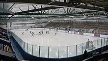 The ice rink surface is NHL regulation size with seating around most of the rink.