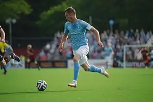 When the 2006–07 season began, Rosenberg played the whole game, as they beat PSV Eindhoven 3–1 to win the Johan Cruyff Shield.[110] However, he was no longer a regular first team player, mostly backing-up Klaas-Jan Huntelaar.[111][112][113][114] He scored three goals in two UEFA Cup appearances against Start.[115][116] Despite being involved in the first team, Roseneberg still could not take Huntelaar's place as the main striker under new coach Henk ten Cate.[11][117][118][119] By the time Rosenberg departed from Ajax, he had made 14 appearances and scored three goals in all competitions.