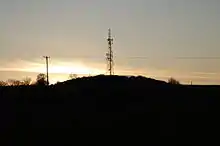 The summit of the high ground between the Tyne, Derwent and Team valleys is to the West of the village, about halfway between Byermoor and Marley Hill itself and is surmounted by an outcrop known as Blackamoor Hill. This area is known as High Marley Hill. It consists of three cottages beside the road, a large house which is accessed via School House Lane, Longfield Farm, a pallet works which occupies the former High Marley Hill School buildings, and several buildings surrounding a large radio antenna currently operated by Arquiva. This sits on top of Blackamoor Hill, from where it is able to broadcast signals across a considerable area (from the rear of Cuthbert Street on a clear day it is possible to see as far as the mouth of the Tyne, and as far North as the RAF's radar station at Brizlee Wood near Alnwick, and from ground level at High Marley Hill the visible area stretches into the North Pennines and East as far as Penshaw Hill near Sunderland). The existing mast replaced an earlier 140 foot mast that was part of the network known as the Medium Frequency Regional Scheme that provided police radio broadcasts between the early 1940s and '50s and covered the area between North Yorkshire and the Scottish border. This was decommissioned when the more modern system using two-way radios was introduced. In early 1942 a Hawker Hurricane crashed in poor weather into an orchard across the road from mast, killing its Royal Canadian Air Force pilot, 24 year old Sergeant James D'Arcy Lees Graham. There is a plaque commemorating the incident in the community centre.