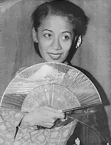 Over the next decade Hardi appeared in more than a dozen films, often in mother roles, for a number of companies, including Perfini's Terimalah Laguku (1952) and Tjambuk Api (1958), Gabungan Artis Film's Pulang (1952), Bintang Surabaja's Pelarian dari Pagar Besi (1951), and Kino Drama Atelier's Gadis Olahraga (1951).[2][8][9] She also started a short-lived company, Budaya Film (literally 'Culture Film'), which had a single production: Uang Palsu (1955), directed by Hasan Basry R.M.[1] By April 1955 she and Samidi, who was working as an employee of the censorship bureau, had two children: Hartati and Pradjono.[2][10]