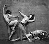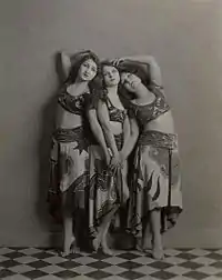 Irene and Miriam may have started performing at an early age with the help of Maurice Brown, an English theatrical producer who founded the Chicago Little Theatre around 1912.[11] The sister joined the vaudeville Orpheum circuit[12] during the 1916-17 season, performing in venues throughout West from Texas to the Canadian Plains[13] and westward along the Pacific Coast. In the early years, they would perform such dances as the Dance of the Gladiators to jazz and classical music provided by the Tennessee Ten Orchestra,[14] and later pianist David Schooler, a one time child prodigy and future concert pianist and music director.