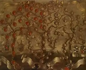 Nicolò Gravisi had four sons, each of whom founded branches of the family. In 1446 the Gravisi were admitted to the nobility of Capodistria with the title of Marquis. In 1662 this was confirmed in Venice, and later in Austria by the Emperor Francis I. The family included both scholars and soldiers. Pietro Gravisi (1520–88) commanded a galley during the Battle of Lepanto in 1571, and fought in the War of Siena and against the Ottomans.[3] Lucrezio Gravisi (1558-1613) was a cavalry commander in the army of the Polish King Sigismund III Vasa, who made him a knight for his services in Prussia and Russia.[4]