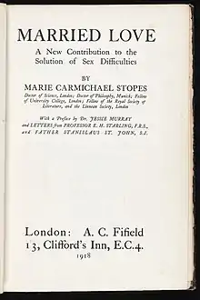 Married Love or Love in Marriage is a book by British academic Marie Stopes. It was one of the first books openly to discuss birth control.