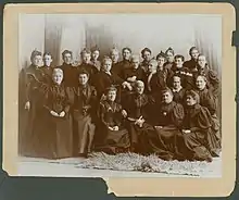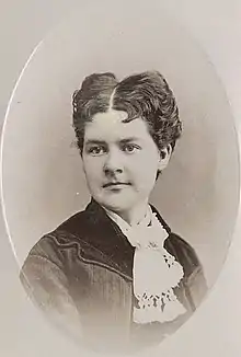 Martha Maria Hughes Cannon was born near Llandudno, Caernarfonshire, Wales on July 1, 1857, the daughter of Peter Hughes and Elizabeth Evans. She was known by the nickname "Mattie".[2] The Hughes family were converts to the Church of Jesus Christ of Latter-day Saints and emigrated to the United States with their two daughters, Mary Elizabeth and Martha Maria. They embarked from Liverpool, England on March 30, 1860, on the ship Underwriter and arrived in New York City, New York on May 1, 1860. Peter was very sick at the time and Elizabeth gave birth to their third child, Annie Lloyd. They stayed in New York to earn money to travel the plains to Utah territory. Erastus Snow, a Mormon leader, invited the family to join a pioneer company funded by the LDS Church for the less fortunate. The family accepted the invitation and traveled by train to Florence, Nebraska, and left with The Joseph Horne Company on July 11, 1861. Shortly before the family's arrival in the Salt Lake Valley, on September 3, 1861, Martha's sister Annie Lloyd Hughes died and was buried in an unmarked grave. She was 21 months old. The Joseph Horne company arrived in the Salt Lake valley on September 13, 1861. Three days after they arrived in Salt Lake City, on September 17, 1861, Peter Hughes died. Elizabeth Hughes was left a widow with two young daughters at the age of 28.[1]:4–8 Thirteen months later, Elizabeth married James Patten Paul, a widower with four sons, thereafter giving birth to the later Latter-day Saints university professor and newspaper editor Joshua Hughes Paul.[3] After Elizabeth's marriage to James P. Paul, Martha, at different times in her life, went by the surnames of both Paul and Hughes. Later in life, Paul encouraged Martha to follow her dream of becoming a medical doctor.[1]:9–12
