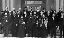 The Utah State Senate in 1897, Dr. Martha Hughes Cannon standing to the left of center.
