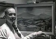 Some of her works were acquired by distinguished institutions and notable persons.[16] Among others, during an honorary ceremony held in México City's Iztapalapa in 1976, she presented a painting of the Valley of Mexico to José López Portillo.[17][18] In December 1978, the Duke of Kent received one of her paintings in a ceremony held by the British Chamber of Commerce in Mexico.[17][18][19]