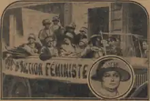 On 6 December 1925, she created the La Ligue d’action féminine pour le suffrage des femmes to influence French opinion to recognise that French women had the right to vote.[2] She believed that giving women the vote may have been a way to avoid wars.[3] Unlike Britain, France had not rewarded French women with the vote after the war, and the argument for women's suffrage was confused. Was the reason one of "right" or because of the benefits of fighting issues such as temperance, venereal disease or disarmament where there was a traditional women's lobby group.[4]