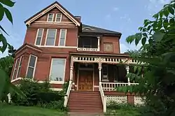 The Martin Hughes House is a historic building located in Council Bluffs, Iowa, United States. It is an eclectic combination of Gothic Revival and Queen Anne architectural elements, with influences from the Neoclassical and the Stick styles.[2] The two-story brick structure follows an irregular plan, and features decorative art glass, terra cotta decorative elements, and a wrap-around porch. It was designed by local architect S.E. Maxon. Hughes settled in Council Bluffs in 1856 and worked as a contractor before he operated a brickyard. He also owned large parcels of land in both urban and rural areas. The house was listed on the National Register of Historic Places in 1984.[1]
