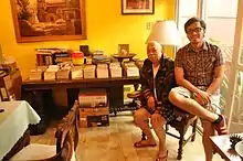 Tinio photographed with his photo collection with heritage activist Joel Aldor in 2014.