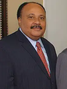 Martin Luther King III (born October 23, 1957) is an American human rights activist, philanthropist and advocate. The oldest son of civil rights leaders Martin Luther King Jr. and Coretta Scott King, King served as the 4th President of the Southern Christian Leadership Conference from 1997 to 2004.