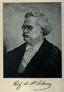 After his graduation in Münnerstadt, Schanz studied classical philology and philosophy from 1861 to 1866 at the University of Munich under Karl Felix Halm und Carl von Prantl and at the University of Würzburg under Ludwig von Urlichs. After studying for a semester at the University of Bonn (1864/1865) with Otto Jahn and Friedrich Wilhelm Ritschl, he returned to Würzburg and was promoted in 1866 with a dissertation on the reconstruction of Socrates' philosophy from Plato's writings.[3] Afterwards he spent a year at the University of Göttingen with Hermann Sauppe. He was graduated ('habilitiert') after returning again to Würzburg in 1870 and joined the faculty (as an 'außerordentlichen Professor'). In the same year, he traveled to Oxford in order to collate the Plato manuscripts there. In 1872 and 1873 he did research in Rome and Venice.[4]