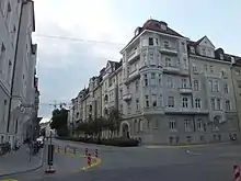 The Martiusstraße is a protected building ensemble consisting of a number of state apartment units, which were built in the early 20th century as a closed concept, over a two-year period, in what was then a contemporary Art Nouveau style. The road had already been designed around 1885 before the annexation of Schwabing to Munich, as a connecting piece of road between Leopoldstraße, then still called Schwabinger Landstraße (highway from Schwabing), and Königinstraße. The western section was built between 1906 and 1908 to the then Kaulbachplatz (today Kißkaltplatz). As an eastern extension of the axis between Elisabeth- / Franz-Joseph-Straße, Martiusstraße was also a preferred area for state apartment buildings in Schwabing. Anton Hatzl, architect and owner, built a closed row of four buildings (No. 1, 3, 5, 7) on the north side and another building (No. 4) to the south. They were later supplemented by two similar designed houses (No. 6, 8) by Franz Popp. Only the latter has lost its elaborate facade design due to the removal of damages and debris from the war, therefore the former architectural importance as structurally emphasized prelude of the street line, together with the unchanged object Martiusstraße 7, no longer comes across clearly. Under a uniform conception, four-storey, elegant apartment units in the neo-baroque Art Nouveau style of plasticity and rich ornamentation were created on the short, straight street section. The adjacent buildings complement the street space.[1]