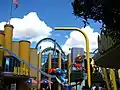 Marvel Super Hero Island is an area at Universal Orlando's Islands of Adventure park in Orlando, Florida that is themed after popular Marvel Comics superheroes. The area opened in 1999, ten years prior to Universal competitor The Walt Disney Company acquiring Marvel Entertainment in 2009. The island is home to four attractions, including The Incredible Hulk and The Amazing Adventures of Spider-Man. Marvel Super Hero Island's architecture and theming is modeled after a Marvel comic book, with a comic book color scheme, amplified angles, and cutouts of many of the most popular Marvel characters.