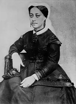 During that time, she returned to Nantucket for a short period after her husband's death. Edward Gardner had helped transport fugitives to their freedom, and he helped Pleasant manage her husband's estate after his death.[15] At some point, Pleasant developed a relationship with John James Pleasants,[lower-alpha 9] who was a former slave.[21] He had been the Creole foreman of her husband's plantation[14] or a waiter in New Bedford, Massachusetts.[13] During their marriage, he worked as a cook-seaman.[19][21] They were married c.1848.[7] She had a baby daughter from one of her husbands named Elizabeth "Lizzie" J. Smith in the late 1840s.[4][19][21] Lizzie was likely left behind on the east coast as Pleasant established herself in San Francisco. Lizzie later made the journey west with Mrs. Martha Steele of Boston.[19]