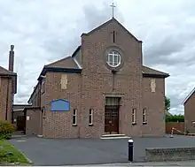 The Catholic parish of New Barnet was created in 1912 and the present church built in 1938 to plans by T. H. B. Scott (Thomas Henry Birchall Scott) (1872-1945) FRIBA FRPS an architect who was also the former president of the Royal Photographic Society and who designed many Catholic churches in London.[1] It is described as of simple design, using a rounded arch that was typical of Scott's work.[2]