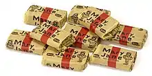 Mary Jane candies were produced by Necco at The New England Confectionery Co. in Revere, Massachusetts,[3] until their 2018 bankruptcy, when Mary Janes and the company's other candy brands were auctioned off. No potential buyer was immediately found for Mary Janes.[4][5] As Necco's purchaser, Spangler Candy Company thus retained the brand, but with no plans to make the candy. In October 2019, it was announced that the Atkinson Candy Company would make and sell Mary Janes starting in 2020 under a licensing agreement with Spangler.[6]