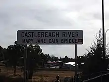 A bridge over the Castlereagh River in Coonabarabran was named after Mary Jane Cain. A plaque was erected by the Coonabarabran Rotary Club near the bridge in Coonabarabran to commemorate her 50 years of service to the community.[18]