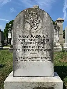 - 1 2 3 4 Brooks, Clayton McClure, Samuel P. Menefee and Brendan Wolfe. Encyclopedia Virginia. "Mary Johnston (1870–1936)". Virginia Foundation for the Humanities. 2014-03-20.