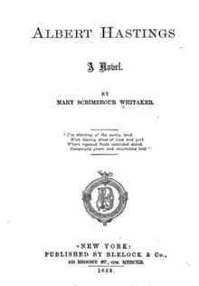Albert Hastings (1868) was her first extended effort in the department of novel-writing. Her vivid descriptions of the scenery of the West Indies, and of the epidemics which annually kill so many of its inhabitants, contained in Albert Hastings, were suggested by her visit to that region.[6] Atala was her second novel.[3]