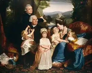Mary Singleton married Richard Copley in Ireland in about 1735, according to family tradition.[2] Richard's father was likely Charles Copley, who was a sheriff of Limerick, an alderman, and one of the landed gentry.[1] Their son, John Singleton Copley, was born on July 3, 1738.[2][3][lower-alpha 1] Within a year of their marriage[2][3] or about the time of John's birth, the family immigrated to Boston of the Massachusetts Bay Colony. Richard established a tobacco shop on Long Wharf.[1] Richard died before May 6, 1748, when an inventory was taken of his estate.[1][lower-alpha 2]