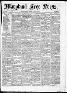 - 1 2 "About Maryland free press. (Hagerstown [Md.]) 1862-18??". Chronicling America: Historic American Newspapers. Library of Congress. Retrieved 7 April 2016.