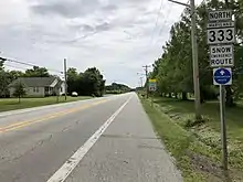 The first section of MD 333 was constructed as a state-aid road between Trippe Creek and Peach Blossom Creek in 1913. The state-aid work included bridges over both creeks.[4] The highway was extended as another state-aid project north from Peach Blossom Creek to Easton by 1919.[5] MD 333 was reconstructed as a state highway beginning in 1925. The highway north of Peach Blossom Creek and the portion between Almshouse Road and Trippe Creek were paved or repaved by 1927.[6][7] MD 333 was completed when the highway was finished between Oxford and Almshouse Road by 1930.[8] At the Easton end, MD 333 was extended south on Washington Street to the new eastern bypass of Easton in 1948 when the town was bypassed by US 213, which became US 50 in 1949.[9][10] MD 333's northern terminus was returned to Washington Street when MD 565 was assigned to Washington Street in 1958.[11] The bridges over Peach Blossom Creek and Trippe Creek were replaced in 1997 and 1998, respectively.[12][13]