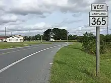 Construction began on MD 365 from Snow Hill in 1924.[3] The highway was completed to Mount Wesley in 1927 and to Public Landing in 1929.[4][5][6] In 2015, a superstreet intersection was constructed at US 113.[7]