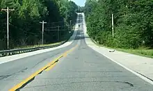 MD 488 begins a gradual downward slope to cross over the Kerrick Swamp.
