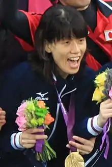 Masae Komiya (小宮 正江, Komiya Masae, born 8 May 1975[4]) is a Japanese goalball player with a congenital visual impairment. She was part of the bronze medal-winning Japanese women's team at the 2004 Summer Paralympics.[2] At the 2012 Summer Paralympics she captained the gold medal-winning Japanese women's team. After the game she stated "The day [we waited for] finally came. I was so overcome with emotion that I couldn't finish singing the 'Kimigayo' national anthem."[5]