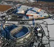 NJT spent a total of $12.4 million for Super Bowl-related construction initiatives. It had also spent $7.7 million in 2012 to for a new bus service facility that tripled loading capacity at Secaucus Junction in order to allow for additional service during special events at the Meadowlands Sports Complex for emergency-related contingency operations, such as bus diversions from New Jersey Route 495. This came concurrently with $2.5 million in 2013 to extend lower-level, platforms at the station to accommodate ten-car trains.[73][74]