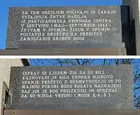 - The Šentvid 1 Mass Grave (Grobišče Šentvid 1) is located a few meters outside the cemetery wall in the Šentvid District, in the northwest part of the city, near the spot where a large oak tree fell during a storm in 1986. It contains the remains of Home Guard prisoners of war that were returned to Yugoslavia by British forces from prisoner of war camps in Austria but died before they could be transported to the Kočevje area, where most of them were murdered.[4][14]