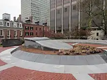 The Massachusetts Law Enforcement Memorial is a memorial installed in Boston's Beacon Hill neighborhood, in the U.S. state of Massachusetts. The memorial that was first displayed in 2004, sculpted by Michael Kenny, features a stone in the shape of a badge, a circular stone disk, and inscriptions of the names of law enforcement officials.[1] Inscribed on the memorial, there are more than 340 names of law enforcement officers who died in the line of duty.[2][3]