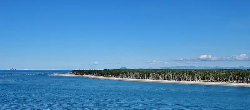 The island protects the entrance to the Tauranga harbour and stretches from Bowentown to Mount Maunganui.[11] Matakana Island is largely covered with pine trees although some land is cleared for the residents. Matakana Island has a relatively small population density of 4.2, though still more than the West Coast(1.3 as of the 2006 Census).[12] The island is the third largest by area associated with the North Island, or the fifteenth largest within New Zealand waters.
