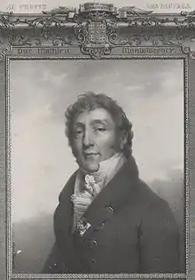 Mathieu Jean Felicité de Montmorency, duc de Montmorency-Laval (10 July 1767 – 24 March 1826) was a French statesman during the French Revolution and Bourbon Restoration. He was elected as the youngest member of the National Assembly in 1789. He is also known for his military expertise and his relation with Mme de Staël. When France became a republic Montmorency turned into an ultra-royalist. Napoleon regarded him as a member of the Catholic opposition. During the Restoration he became Minister of Foreign Affairs.