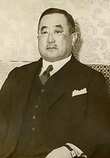 Tsuneo Matsudaira (松平 恒雄, Matsudaira Tsuneo, April 17, 1877 – November 14, 1949) was a Japanese diplomat and politician who served as the first President of the House of Councillors from 1947 to 1949. He previously served as Ambassador to the United States from 1924 to 1928, to Britain from 1929 to 1936, and Minister of the Imperial Household from 1936 to 1945.