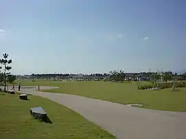 Matsushige (松茂町, Matsushige-chō) is a town located in Itano District, Tokushima Prefecture, Japan. As of 1 April 2022, the town had an estimated population of 14,770 in 6794 households and a population density of 1000 persons per km².[1] The total area of the town is 14.24 square kilometres (5.50 sq mi). Matsushige is the location of Tokushima Airport, from where domestic flights depart for various other Japanese cities. The town also hosts a Japan Maritime Self-Defense Force base.