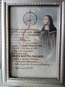 - ↑ "Blessed Matthia dei Nazzarei". Saints SQPN. 26 December 2013. Retrieved 19 May 2015.