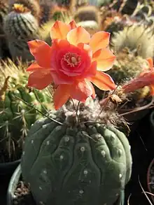 Matucana aurantiaca (common name, orange matucana[2]) is a species of flowering plant in the cactus family Cactaceae. It grows in the Cajamarca and La Libertad regions of Peru.[3] It is considered to have a stable population and a wide range with no threats.[1]