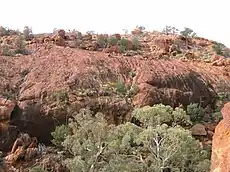 The plateau is a drainage basin for the Granite Plateau Creek, and its major tributary, Saucepan Creek. Both of these creeks flow only briefly after rain and as the region receives highly variable rainfall, water is scarce for most of the year and both creeks are ephemeral. In places the creeks have cut deep gorges and valleys into the plateau’s granite creating permanent and semi-permanent waterholes that support numerous species of frogs including the brown toadlet (Pseudophryne bibroniiand),[2] water spiders (Dolomedes spp.) and small populations of unidentified fish. The fish are possibly spangled perch, (Leiopotherapon unicolor) a widely distributed desert fish common in much of the Hamilton Creek Catchment, or Lake Eyre Hardyhead, (Craterocephalus eyresii) the most common and widely distributed fish in the Flinders Ranges.[2]