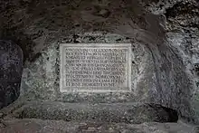 A memorial plaque for the martyrdom of Maximus of Salzburg in the catacombs of St. Peter's Cemetery, installed in 1521.