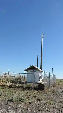 During World War II, chemical weapons were stored at Talmoi.[22] On 31 July 1943, it was decided by the Royal Australian Air Force (RAAF) to store 40% of the chemical weapons stocks in north-east Queensland.[22] Talmoi wool scour was subsequently chosen as the specific location for RAAF No.4 Central Explosives Reserve (20°43′10″S 142°44′41″E / 20.7194°S 142.7448°E), because it had a bore with running water in addition to storage sheds and living quarters, it had a railway siding on the Great Northern railway line to Townsville (a major military site during the War of the Pacific), and it was a safe distance from any other settlement. Further buildings, roadworks and other earthworks were undertaken. In September 1944, a total of 2,550 phosgene bombs were transported by rail from Lithgow, New South Wales to Talmoi. Each bomb was 250 pounds (110 kg). The bombs were stored in reinforced concrete igloo-like structures, while a corrugated iron shed was used to store mustard gas canisters. After the war in January 1946, the RAAF destroyed all the chemical weapons at Talmoi (then estimated as 28,000 phosgen bombs) by shooting each bomb with a bullet, releasing the gas.[23] The RAAF formally decommissioned the facility in February 1946. The bomb casings were then used by local people as building materials until December 1948 when the McKinlay Shire Council reported that mustard gas was still in some of the bomb casings. The RAAF initially denied this could be so stating that the weapons had all been destroyed, but nonetheless initiated an investigation. In September 1949, the public was advised to notify the RAAF in Townsville if they had any "empty bombs" in their possession.[24][25] A number of the igloo-shaped bomb storage structures remain on the site.[26]