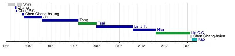 The Mayor of Hsinchu is the chief executive of the government of Hsinchu City. This list includes mayors of the city's provincial era (1982 – present).