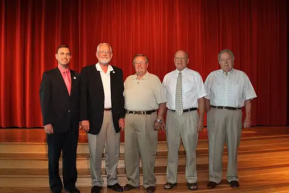 All of West Valley City's living mayors attended a July 28, 2010 event at the Utah Cultural Celebration Center to celebrate the 30th anniversary of the city's incorporation. From left to right, Mike Winder, Dennis J. Nordfelt, Brent F. Anderson, Michael Embley, and Gerald K. Maloney. Henry H. "Hank" Price and Gearld L. Wright were deceased.