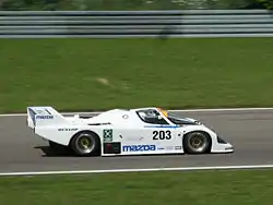 The Mazda 757 is a prototype racing car built by Mazdaspeed for the 24 Hours of Le Mans running under the IMSA-spec GTP class. It replaced the previous lineage of Group C2 class cars which ended with the 737C and was the first chassis built entirely by Mazdaspeed and designed by Nigel Stroud. The 747 designation was skipped to avoid confusion with the second generation Mazda RX-7, which was developed under the codename P747.[1] The 757 used a new 3-rotor 13G Wankel engine.