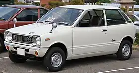 The Mazda Chantez (chassis code KMAA) is a two-door kei car that was introduced by Mazda in July 1972. The Chantez had a longer wheelbase at 2,200 mm (86.6 in) than most of its competitors and featured the powerful two-stroke "AA" engine also seen in the Porter. With 35 PS (26 kW; 35 bhp), top speed was 115 km/h (71 mph) and the 400 m (0.2 mi) sprint was dispatched in a sprightly 20.6 seconds.[1] In more recent testing (early 2000s) of a 1972 GF II, 0–100 km/h came up in 35.8 seconds.[2] The engine was installed longitudinally in the front of the vehicle powering the rear wheels, and the spare tire was installed next to the engine on the right side.[3][4]