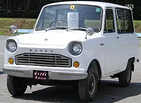 The predecessor of the Porter, introduced in February 1961, the Mazda B360, was available as a pickup (KBBA33) or light van (KBBAV) version of the R360 kei passenger car.[1] It had a 356 cc OHV V-twin producing 13 PS (10 kW) (BA) and weighed 535 kg (1,179 lb). The 1961 export only Mazda B600 (KBEA) was similar to the B360 except that it received an enlarged 577 cc version of the air-cooled V-twin. This engine produced 20 PS (15 kW) and 3.8 kg⋅m (37 N⋅m; 27 lb⋅ft) of torque.