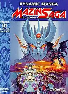 MazinSaga (Japanese: マジンサーガ, Hepburn: Majinsāga) is a Japanese manga created by Go Nagai and bazed on Mazinger. It was originally serialized in Shueisha's seinen manga magazine Weekly Young Jump from 1991 to 1992 (with a one-shot chapter also published in the summer 1992 issue of Bears Club Natsunogo),[1] with its chapters collected in three tankōbon volumes.[2][3] Fushosa republished the series in 1997, and continued it with three additional volumes (totaling six volumes) until 1998.[4][5] The series is unfinished, although Nagai stated in 2007 that it would be resumed in the future.[6]