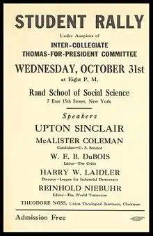 - ↑ Jack Ross, The Socialist Party of America: A Complete History. Lincoln, NE: Potomac Books, 2015; p. 310.