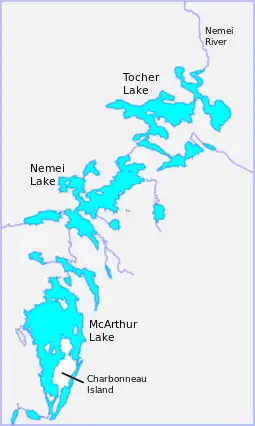 ![]() McArthur, Nemei, and Tocher lakes drain into the Nemei River | |